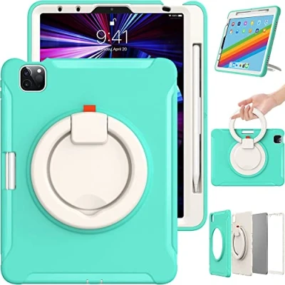 Compatibility: case compatible with iPad 10.9 inch iPad Air 5. Generation 2022 (Models: A2588 / A2589 / A2591) / iPad Air 4 Generation 2020 10.9 inches (models: A2072 / A2316 / A2324 / A2325). Material:3 Layers Shock Proof:The screen frame, hard PC inner case and TPU material are designed to perfectly protect your iPad from accidental drops, shocks and dust. Great for kids and students. Pen Holder:Built-in pen holder,you can carry your pencil safely while it can be easily stored and taken out without worrying about falling off with super durability. Rotating Ring Handle: The multi-functional rotating ring can provide multiple angles, work or study or watch videos, choose the angle that suits you best. It also acts as a handle for easy access and transport. Precise cut-outs: Precise cut-outs to ensure access to face recognition, fingerprints and other functions. Raised bezels protect your iPad from scratches and damage while keeping dust away.