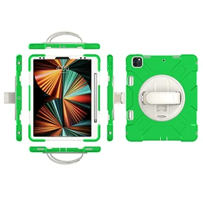 360° Rotating Wrist Strap & Shoulder Strap & Swivel Stand: The adjustable wrist strap helps you hold your tablet with ease, as soft and comfortable as your grip. You can get landscape view or vertical view as needed. 3 Layers Durable Protection: Flexible outer silicone with rigid PC inner shell and top PC frame provides protection for your tablet. The outer silicone layer is very thick and soft to absorb shock from accidental drops or shock. The case gives you easy access to all buttons, controls and ports without having to remove it from the case, the bumper guard keeps you away from bumps, and the port covers of the case keep dust away from the tablet. The integrated pen holder offers new accessibility features. Cutouts provide easy access to the new features of the tablet screen/charging port/speaker. SOFT WRIST STRAP AND SWIVEL STAND - Provides the safest protection and more comfort when you play or work with your iPad. Enjoy better entertainment and free your hands. The 360 degree rotating stand provides multi-angle viewing with a soft grip tape, making it easier to use your iPad when you are out and about, working and playing with your kids.