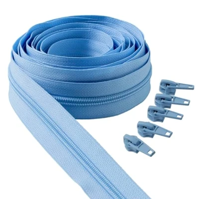 IPEA 5 Metre Blue Continuous Chain Zipper + 15 Metal Sliders Made in Italy Size #5 Nylon Zippers Zip Cut for Sewing by The 30mm Wide Light
