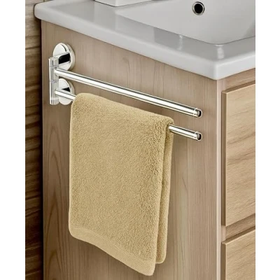 IPEA Adhesive Towel Holder for Wall or Bathroom Furniture 2 Places No Drilling Required Modern Design with Double Movable Arm Paste in Bathroom, Shower, Home