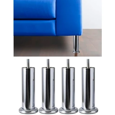IPEA Aquamarina Furniture and Sofa Feet with Base Set of 4 Iron Legs Minimal Design for Armchairs Cupboards Chrome Colour Height 120 mm