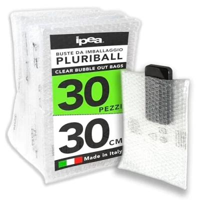 IPEA Bubble Envelopes: Pack of 30 Bubble Envelopes 30 x 20 cm for Packaging, Shipping and Packaging of Items. 100% made in Italy. THICK AND RELIABLE ENVELOPES: Large 55 g/m² bubble bags made of high strength PE against bumps and tears to provide maximum protection to your items. Versatile and reliable, their simple use makes them very useful for wrapping small products that need to be shipped, protected or boxed. SINGLE BAG SIZE: 30cm X 20cm APPLICATIONS: Ideal product for wrapping to protect items intended for domestic or international shipments for E-Commerce use and more. Perfect for moving around and protecting items Also useful for wrapping small fragile products such as glasses, crockery, cups, bottles, frames and porcelain plates. Shrinkable: Multi-purpose envelopes that you can easily cut to fit the perfect size for your items, avoiding waste and ensuring an optimal fit. Ideal for shipping, moving or simply protecting sensitive items.