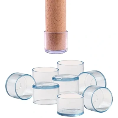 CONTENT: Pack of 16 silicone transplant caps for the legs of chairs, furniture and tables. DETAILS: Very easy to apply, these soft rubber caps have anti-noise and anti-slip, but above all protect your flooring from scratches and signs of wear caused by the legs of chairs and furniture. They are also washable and durable ABOUT WHICH LEGS TO USE: The inner diameter of the caps is 20 mm. They are perfect on round legs from 19 to 21 mm wide. MATERIAL: Silicone. Transparent color. APPLICATIONS: Perfect for applying on wood, iron or plastic legs. Chair pads suitable for home and restaurant chairs, terrace chairs, bar stools, metal bistro chairs, desk chairs and various furniture.