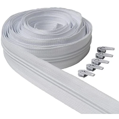 IPEA White Continuous Zip 5 Metres Long + 15 Metal Sliders, Chain Size 5, Made in Italy, Nylon Zips, Zip, Cuttable for Sewing by The Metre, Width 30 mm,