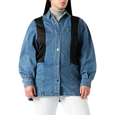 IPEKYOL Women's HIPS Scuba Denim Mix Jacket, Light Blue, 10