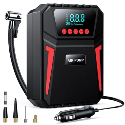 Ipflin Tyre Inflator Air Compressor Digital Car Pump 12V DC,Portable Accessories For Men,Electric 150 PSI Tyres,BikesFootball,Preset Pressure & Auto Shutoff