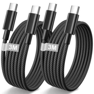 Wide Compatibility for Apple USB C Cable: Our iPhone 15 16 charger cable compatible with virtually all USB-C devices including phones, tablets, and laptops. Compatible with iPhone Air/17/17 Pro/17 Pro Max/16/16 Pro/16 Plus/16 Pro Max/15/15 Pro/15 Plus/15 Pro Max; iPad Pro 2021/2020/2018, iPad Air 5/4; Macbook Pro; Galaxy S24/S23 Ultra/S22 and more USB-C port devices. 60W USB C to USB C Charger Cable: iPhone 15 charger cable can deliver up to a max of 60W(20V/3A) power, ensuring high-speed safe charging for your Type C devices, this usbc to usbc cable can fast charger your iPhone 15 up to 60% in just 30min. In addition, 1G file will be transferred in 30s via this USB C cable. Note: This lead doesn't support video output or streaming function. 2Pack 3M iPhone 16 Charger Cable: Type c charger cable fast charging made of high-strength nylon material jacket and designed with thicker and longer strain relief between the head and cable, the USB C charger cable apple can successfully pass 10000+ bending tests without twist, tug, and tangle; Unique laser welding technology make the connector prevent from broken, this iPhone 16 lead is more durable than other USB C charger cable. Stable and Safe Fast Charging Cable Type C: This Type C to Type C Cable can sync data transfer rates up to 480 Mbps, built with multi-layer shield, this USB C to USB C cable provides a safer and stabler charging experience. Comes with 2 iPhone 15 charging cables, one for home and another for office, which is convenient and economical. What You Get: 2-piece 3M USB C to USB C Cable, If you have any questions about this Apple USB C cable, please feel free to contact us, and we will solve issues within 24 hours.