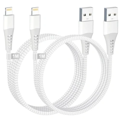 【iPhone Cable MFi Certified】The MFi Certified Chip Ensures that USB lightning cable can output Safe and effective current for the device. Built-in overvoltage protection and strict quality testing ensure safe charging of iPhone devices. USB to lightning cable prevents overheating and overcharging during charging. 【Widly Compatibility iPhone Charging Cable 1M】iPad charger cable is compatible with iPhone 14/14 Plus/14 Pro/14 Pro Max/13/13 Pro/13 Pro Max/12 /12 Pro/12 Pro Max/12 Mini/11/11 Pro/11 Pro Pax/XR/XS/XS Max/X/10/8/8 Plus/7 /7 Plus/6s Plus/6s/6 Plus/6/5s/5c/5/SE, iPad Pro 10.5-inch/iPad Pro 12.9-inch/Pro 9.7-inch/Pro 2020/Pro 11/iPad 7th/ 6th /8th gen/Air/ Air 2/mini/mini 2 /mini 3 /mini 4/mini 5. 【2.4A Fast Charging and Synchronous iPhone Lightning Cable】iPhone charger cable with original chip, you can enjoy up to 2.4A fast charging. And built-in tinplate casing multiple shielding minimizes interference, ensure more stable charging current and no signal interference with data transmission. *Note: Please use the charger with 5V/2.4A. 【Super Durable and Reliable USB iPhone Charger Cable】The iPhone cable fast charging is made of durable nylon braided material, which provides greater protection and flexibility, avoiding common tangles and knots.With 10,000+ times bend test, the flexible and durable nylon braided USB lightning cable longer service life and will never rupture. 【What You Get】You can get 2Pack 1M lightning to USB cable (White) with 12-month service. We value your shopping experience, so if you have any questions about iphone charger cables, please do not hesitate to contact us.
