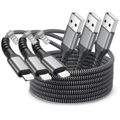 Wide Applicability: The iPhone charger cable is designed for fast charging of iPhone mobile phones. The lightning cable is compatible with iPhone 14 Pro Max,14 Plus,14 Pro,14,iPhone 13 Pro Max,13 Pro,13 Mini,13,iPhone 12 Pro Max,12 Pro,12 Mini,12,iPhone 11 Pro Max,11 Pro,11,iPhone XS Max,XS,XR,X,iPhone 8 Plus,8,iPad 4/5/6/7/8/9,iPad Mini 5/4/3/2/1, iPad Air 3/2/1,iPad Pro 12,9 (2017 / 2016 / 2015), iPad Pro 9.7 inch (2017), iPad Pro 10.5 inch (2017). Durable for Apple Charger Cable: Long iPhone charger cable's housing is made of nylon. Nylon is a very flexible material and cables made from it are abrasion resistant, bend resistant and durable. The iPhone cable has passed professional use tests and the iPhone 12 charger cable can withstand 20,000+ bending tests, making it more practical and durable than plastic cables. The flexible curvature of the iPhone charging cable makes it easier to plug and unplug the phone from the device. MFi-certified USB iPhone Charger Cable 1M 3pack: This USB lightning cable has been MFi-certified and rigorously tested to ensure 100% compatibility with all iOS devices equipped with an 8-pin Lightning connector. The lightning cable for iPhone ensures device safety during fast charging and guarantees reliability and stability, making it ideal for everyday use. The iPhone cable fast charging can be used with fast chargers or car chargers to achieve high-speed charging of electronic devices. Safe Charging: The iPhone lightning cable features powerful built-in protection against short circuits, overheating and overcharging to keep your devices safe. 1M iPhone se charger cable's built-in fast charging circuitry automatically identifies and delivers the necessary current to your device to avoid damage during the charging process. Whether you use it at home, in the office, or in the car, USB to iphone cable can meet your daily charging needs without power failure. 3pack 1M USB A to Lightning Cable: The package contains 3pack 1M lighting cables. These iPhone USB cable enable fast charging and data transfer simultaneously, with data transfer speeds of up to 480 Mbps, allowing you to transfer up to 100 songs in seconds. These iPhone charger lightning cable 1M provide fast charging for your iPhone, iPad and AirPods. The USB charger iPhone cable 1m are suitable for use in multiple locations, including living rooms, bedrooms, offices and car back seats.