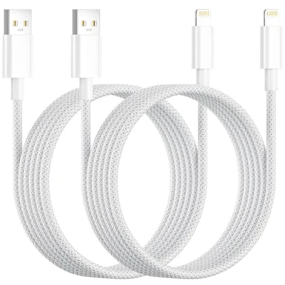 2.4A & 480Mbps iPhone Charger Cable: This iPhone charging cable supports a maximum current output of 2.4A, enabling fast and efficient charging performance. At the same time, the transmission speed of iPhone cable can reach 480Mbps, allowing stable transfer of files, audio, and high-definition video between macOS or Windows and iPhone devices. Sturdy and Durable Lightning Cable: This USB Lightning cable features a sturdy white nylon braided exterior, with thickened copper wires inside to ensure stable power transmission. Tested to withstand over 20,000 bends, the USB to Lightning cable is resistant to the wear and tear of daily use and effectively prevents accidental breakage. Additionally, the Lightning connector is reinforced with aluminum alloy to prevent cracking or damage. Safety Certified USB to iPhone Cable: This iPhone Lightning cable has a built-in Apple MFi-certified chip, which prevents compatibility warning messages when connecting to devices and ensures stable and safe fast charging for Lightning devices. When using this USB iPhone charger cable, heat generation during charging is low, helping to protect the battery and extend the device’s lifespan. Compatibility for Apple Lightning Cable: The Lightning port of this iPhone charger lead is compatible with iPhone 14/14 Plus/14 Pro/14 Pro Max, 13/13 mini/13 Pro/13 Pro Max, 12/12 mini/12 Pro/12 Pro Max, 11/11 Pro/11 Pro Max, XR/XS/XS Max/X, 8/8 Plus/7/7 Plus, iPhone SE 1/2/3, 6s/6s Plus/6/6 Plus/5s/5c/5, and can also serve as iPad charger cable, compatible with iPad Pro (12.9" 2015/2017, 10.5" 2017, 9.7" 2016), iPad Air (10.5" 2019, 9.7" 2013/2014), iPad (10.2" 2019/2020/2021, 9.7" 2012/2017/2018), and iPad mini (7.9" 2012/2013/2014/2015/2019). What You Get: 2 x USB to Lightning cable 2M (Nylon braided material). We offer a 24-month after-sales warranty for your Apple charger cable order. If you encounter any quality issues with iPhone charger Lightning cable during this period, please contact us, and we will provide you with a satisfactory after-sales solution.