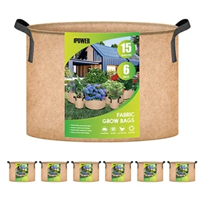 iPower Fabric Containers Aeration with Nylon Handles, for Planting Vegetables, Tan, 15 Gallon