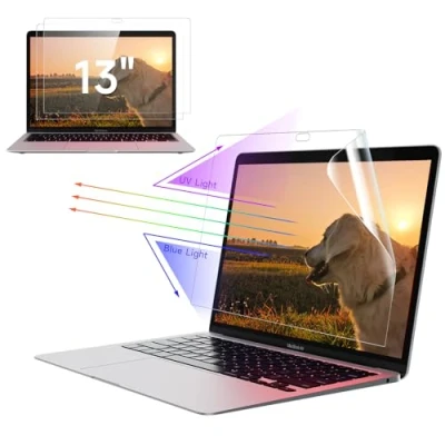 【Compatibility】This anti blue light screen protector is designed for MacBook Pro 13 Inch 2016, 2017, 2018, 2019, 2020, 2021,2022,M1. (Model: A1708, A1706, A1989, A2159, A2251, A2289, A2338) and MacBook Air 13 Inch 2018, 2019, 2020, M1. (Model: A1932, A2337). Please check the screen size and model number before purchasing macbook pro anti blue light screen/ macbook air anti blue light screen. 【Enhanced Anti Blue Light Feature】IPROKKO developed a new anti-blue light material, which can make the blue light blocking rate of the 13.3” mac screen blue light blocker up to 99.4%. This effectively reduces digital eye fatigue caused by harmful blue light emissions, and protects the eyes from computer/ MacBook laptop visual syndrome (such as eye loss of focus, blurred vision, fatigue, eye soreness, swelling, headaches), to the greatest extent possible. 【Advanced Anti-Glare】Originated from the most advanced AG anti-glare technology in Germany, the built-in extremely fine particles transform the strong energy of direct light into soft scattered light. By reducing glare, Anti-Blue Light Film dramatically improves visibility, especially when using your MacBook outdoors or in brightly lit environments. It enhances the clarity of the screen, Let you get a more natural and comfortable viewing experience and minimize eye fatigue. 【Easy to Install】The adsorption layer of the MacBook anti-glare screen protector is made of new material-nano-silica gel, which has the functions of automatic adsorption and automatic air bubble removal, all small air bubbles can be removed by pressing to install. Cleaning cloths, wipes and dust removal stickers prevent dust from settling on the screen, making application easy and bubble-free, and if bubbles do occur, the filter can be lifted and reapplied.