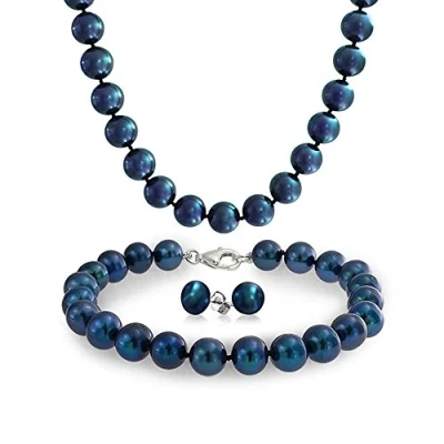 Classic traditional and timeless pearls set, the 7mm Iridescent color changing black cultured freshwater stud earrings, 7.5 inch bracelet and the 18 Inch pearl necklace that make up this affordable jewelry set. If you are planning a wedding, consider this pearl jewelry set as a bridesmaids gift Measure: Necklace: 7MM in 18" length, Bracelet: 7MM in 7.5in length, Earrings : 7MM, Material: .925 Sterling Silver, Freshwater Cultured Pearl SEND LOVE, PURITY, AND WISDOM: Classic pearl necklace bracelet earring set will never be wrong for someone you love. Show her you are very much and want to express your love in a unique and timeless way to create a lasting memory with her. Traditional strand style pearls with lobster claw clasp. Post with friction back earrings Thoughtful Gifts for Every Occasion: Whether it's Mother's Day, an Anniversary, Wedding, Birthday, Holiday, Stocking Stuffer, Christmas, Valentine’s Day, or Graduation, our exquisite jewelry is the perfect present. Ideal for expressing your love to your Sister, Mother, Grandmother, Daughter, Wife, Girlfriend, Aunt, Mum, Mommy, Grandma, or even for yourself. It's the ultimate gift for anyone special in your life. USA-Based Company with 30-Day After-Sale Service: We take pride in our craftsmanship and product quality. Rest assured, if you receive an item with manufacturing defects, we've got you covered. Click on the link to contact our friendly customer service.