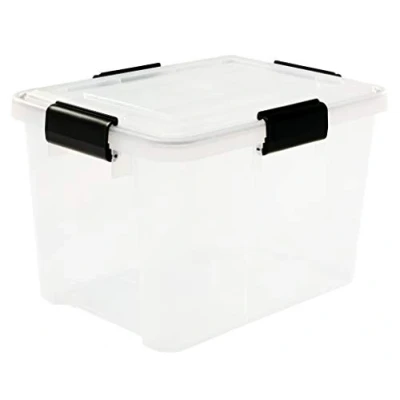 AIR TIGHT STORAGE BOX DIMENSIONS: External : W29 x D39 x H26 cm | Internal : W29.5 x D22.5 x H23.3 cm |This product is 100% made in Europe in Iris Ohyama's factories. PLASTIC STORAGE BOX CAPACITY: The volume of a box is 20L.The volume of this product is sufficient to store many items, such as pens, ccessories, toys, notebooks and others. MATERIAL: This product is made from BPA-free plastic (polypropylene). This guarantees resistance to shocks and blows as well as easy cleaning of the storage box with lid. HERMETIC & SAFE: The lid of this plastic storage box has been equipped with a waterproof seal to protect the effects of moisture and dust in any wet rooms. Also, it has been provided with clips for easy and safe daily use for everyone. STORAGE BOXES DESIGN: The shape of this product has been designed to fit different styles and tastes, so it can be used in large, medium or small rooms. Moreover, its solid and reinforced lid allows to stack different boxes of the same size, for a space saving.