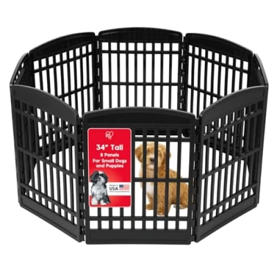 IRIS USA 34" Exercise 8 Panel Pet Playpen, Dog for Medium and Large Dogs, Keep Pets Secure, Easy Assemble, Fold It Down, Storing, Customizable, Black
