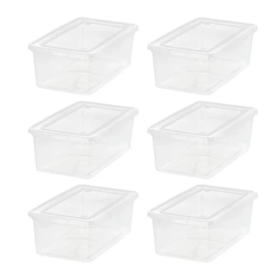 IRIS USA 6 Pack Storage Bins with Lids, Quart, Shoe Boxes Clear Stackable Containers Organize Shoes Closet Shelves, Classroom Organization Teacher Tools, Game BPA Free Plastic