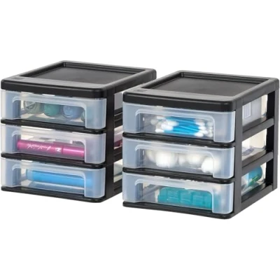 IRIS USA Plastic 3 Drawer Desktop Organizer for Office, Files, & Supplies, Small, Black, 2 Pack