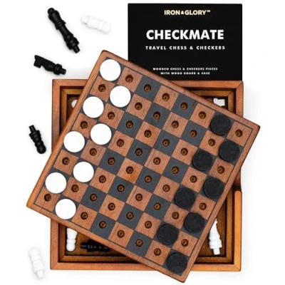 AmazonFrom Iron & Glory comes Chess & Checkers! A 2 in one checkers & chess set; Great for adding a touch of class to your wooden coffee table or living room; A sleek addition to the game room or den After unique gifts? This stylish 2-player game set is perfect for functional & fun entertainment; Whether you're playing at home or on the go, it offers endless entertainment for friends. Made from durable wood, this set is not just a game but a piece of art; It’s perfect for those who enjoy tabletop games, wood puzzles, & a stylish table decor without compromising on fun This sleek design doubles as home decor or bookshelf decor; Great for adding a touch of class to your wooden coffee table or living room; It’s a perfect conversation starter for any gathering Ideal for travel lovers! This set is compact, making it an amazing travel board game or travel chess set; Perfect for a plane, train, or coffee shop; It's a great travel game for adult., Manufacturer: SUCK UK
