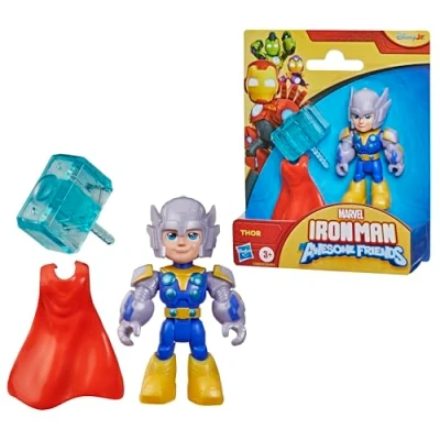 POSEABLE 7.6-CM (3 INCH) MARVEL TOY: this 7.6-cm (3 inch) Iron Man and His Awesome Friends Thor action figure includes five points of articulation, so children ages 3 and up can pose him for armoured-up adventures ICONIC MARVEL CHARACTERS: Iron Man and His Awesome Friends action figures for boys and girls feature fan-favourite characters, including Iron Man, Iron Hulk, Black Panther, Thor and Ironheart CHARACTER-INSPIRED ACCESSORIES: this Marvel Thor action figure comes with detachable hammer and cape accessories, so children can gear up their toy and imagine a boost of power SERIES-INSPIRED FIGURES: this Thor figure features design inspired by the Disney Jr. programme Iron Man and His Awesome Friends ENCOURAGES IMAGINATIVE PLAY: preschool children will love re-creating favourite moments from the series, as well as imagining their own superpowered adventures with this Super Hero action figure, Manufacturer: Hasbro