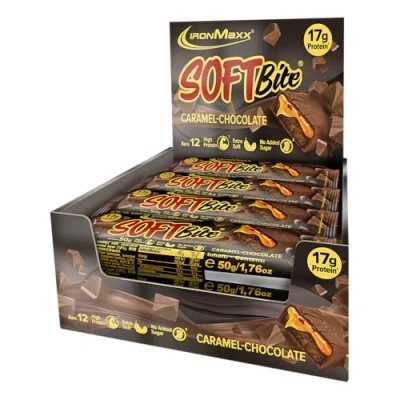 IronMaxx SoftBite protein Bars Chocolate Caramel 12 x 50 g Extra soft texture High in and fiber No added sugar Ideal for on the go