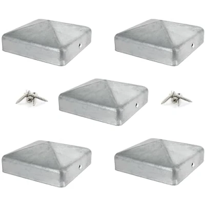 IRONTITE® 5 Pack Metal Fence Post Caps 3x3 Galvanised, Newel Cap Toppers to Suit 75mm (3") Square Posts. Protect Your Posts with This Pyramid Protector (GALV)