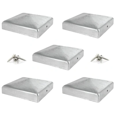 IRONTITE® 5 Pack Metal Fence Post Caps 4x4 Galvanised, Newel Cap Toppers to Suit 100mm (4") Square Posts. Protect Your Posts with This Pyramid Protector (GALV)