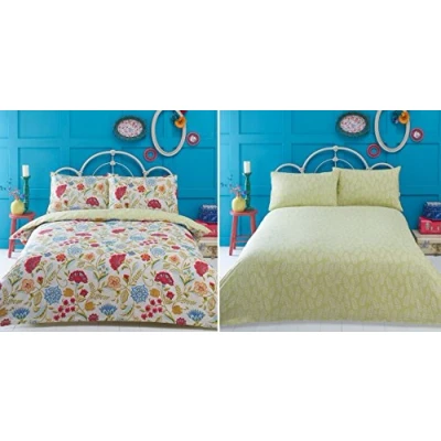 Irvine King Size Duvet Cover and 2 Pillowcases Set Bedding, Bed Set, Cream, Blue, Red, Floral, Retro, Cream