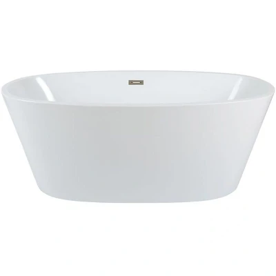General description Give your bathroom a stunning focal point with the Milano Irwell double ended freestanding oval bath. Benefitting from premium quality acrylic construction, the bath has a hard-wearing coating that helps to resist stains and scuffs. The double ended design and generous capacity allows for luxurious and comfortable bathing at either end. Technical specifications Acrylic construction with hard-wearing coating Dimensions: 1595mm x 740mm x 590mm Capacity: 185 litres Compatibility and accessories Compatible with freestanding or wall-mounted taps Includes white push button waste, brushed nickel overflow, and pipe Installation Height adjustable legs for easy levelling on uneven floors Installation requires a freestanding or wall-mounted mixer tap and bath trap Usage The bath is designed for luxurious bathing, allowing comfortable use from either end. Other information This product is covered for 10 years.