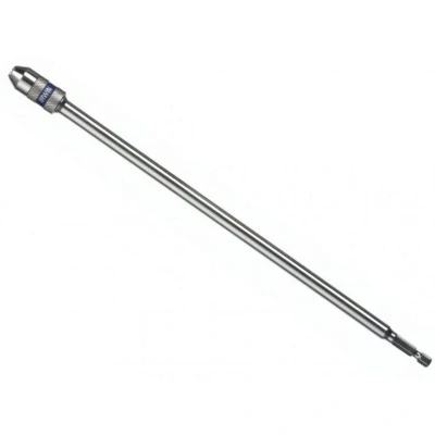 General description This is a quick-change drill bit extension measuring 300 mm, equipped with the Lock-n-Load™ system for fast, one-handed release. It is designed to securely hold hex shank or ball stop drill bits, making it suitable for various drilling tasks. The extension is made from durable carbon steel for long-lasting performance. Technical specifications Material: Carbon steel Length: 300 mm Bit shank size: 1/4 inch (standard) System: Lock-n-Load™ for quick, one-handed bit changes Compatibility and accessories Compatible with 1/4 inch quick-change bits Compatible with screwdriver bits Installation Insert the desired bit into the extension's chuck until it clicks into place Use the Lock-n-Load™ system to secure or release the bit with one hand Usage Ideal for quick bit changes during drilling or screwdriving tasks Suitable for use with hex shank or ball stop drill bits