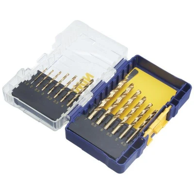 General description IRWIN® HSS Pro Titanium 13 Piece Drill Bits are specifically designed for drilling metal and harder alloys. These drill bits can achieve increased drill speeds of 40-60% compared to standard bits. The titanium nitride coating enhances friction resistance and extends the lifespan of the bits. Featuring a 135° split point, they ensure perfect centering, minimize bit walk, and reduce drilling pressure, resulting in a more accurate and clean finish. The heavy-duty web construction optimizes strength and durability, and the set is supplied in a convenient storage case for easy organization and transport. Technical specifications Number of pieces: 13 Sizes: 1.5mm, 2mm, 2.5mm, 3mm, 3.2mm, 4mm, 4.5mm, 5mm, 5.5mm, 6mm, 6.5mm, 7mm Compatibility and accessories Compatible with standard drill chucks for metal drilling applications Supplied with a storage case for organization Installation Insert the drill bit into a compatible drill chuck Secure tightly before use Usage Use