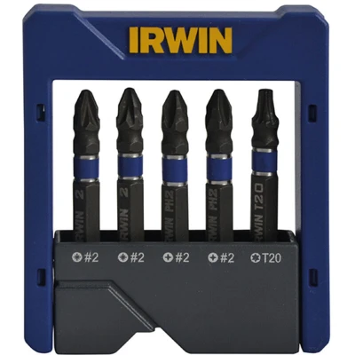 General description The Irwin Impact Screwdriver Pocket Bit Set is designed specifically for high torque impact drivers. Manufactured from heavy-duty, high-grade steel, these bits offer three times the lifespan compared to standard screwdriver bits. Their precision tip geometry ensures a superior fit, minimizing stripping and cam-out. The bits feature a Power Groove design for compatibility with the IRWIN® Impact Performance Series™ magnetic screw-hold attachment. Technical specifications Length: Mixed Pack Quantity: 5 Type: Mixed Set Compatibility and accessories Compatible with IRWIN® Impact Performance Series™ magnetic screw-hold attachment Usage Ideal for use in high torque impact drivers Other information