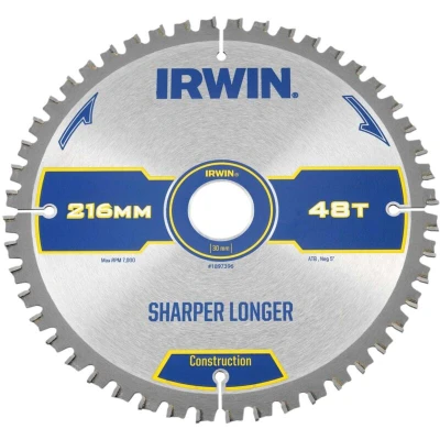 Irwin Construction Mitre Circular Saw Blade 216 x 30mm 48T ATB/Neg IRW1897396
