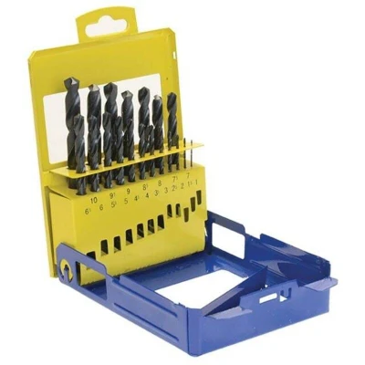 General description This High-Quality 19-Piece HSS Metal Drill Bit Set is designed for durable metal drilling, featuring 15 high-speed steel (HSS) drill bits primarily for low-carbon steel, but also suitable for wood and plastic. Made from high-quality HSS tool steel, these bits are oxidized for enhanced durability. The universal 118° point angle allows for effective drilling across various materials, while precision-ground cutting edges ensure fast and accurate drilling. The set is packaged in a hardwearing metal storage case. Technical specifications Material: High-speed steel (HSS) Point angle: 118° Sizes: 1.0 mm to 10.0 mm in 0.5 mm increments Manufactured according to DIN 338 standards Pack Quantity: 19 Compatibility and accessories Cylindrical shank for easy handling and compatibility Usage Suitable for drilling in steel and steel castings Compatible with alloyed and non-alloyed steel, cast iron, non-ferrous materials, and plastics Other information