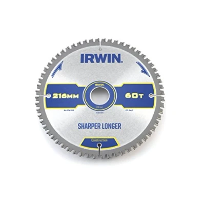 IRWIN IRW1897397 216 x 30mm 60 Teeth Construction Circular Saw Blade with ATB Tooth Grind/ Negative Hook