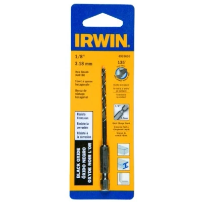 Irwin Tools 4935636 Black Oxide Hex Shank Drill Bit, 1/8 Inch