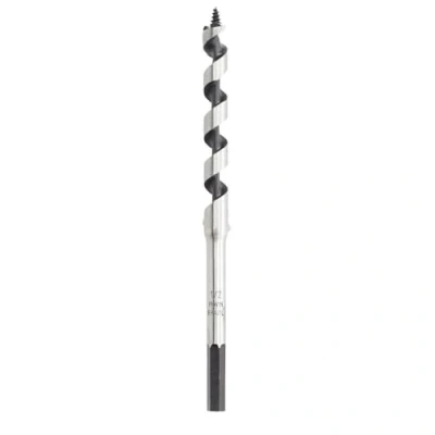 AUGR BIT I-100 1/2" X 7-1/2" Solid center design provides extra rigidity while boring Wide lands keep the bit straight as it bores through the hole. The flutes are ground behind the lands to funnel chips to the inside of the bit and away from the outside diameter, producing a faster, cleaner cut Single-spur cutting edge scribes the circumference of the hole for a smoother finish Coarse screw point provides fast boring in hard and soft woods All bits have a 4-1/2-Inch twist length and a 7-1/2-Inch overall length