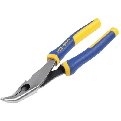 General description These are 200mm (8-inch) bent long nose pliers designed for gripping, twisting, and cutting wires. They feature a thin, angled nose that allows access to tight spaces and around obstructions. The pliers are made from durable chromium nickel steel with induction-hardened cutting edges that stay sharp longer. The machined jaws provide maximum gripping strength, and the molded ProTouch™ grips offer added comfort and reduce hand fatigue. Suitable for various wire work, these pliers meet high manufacturing standards with TÜV/GS approvals. Technical specifications Length: 200mm (8 inches) Material: Chromium nickel steel Finish: Chrome Cutting edges: Induction hardened Handle type: ProTouch™ Weight: Approximately 0.24kg Compatibility and accessories Suitable for wire cutting and manipulation. Installation No installation required; ready to use out of the box. Usage Use the angled nose to reach into tight spaces. Apply force for gripping, twisting, or cutting wires. Handle
