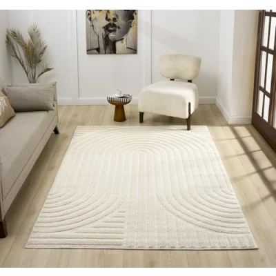Isabella Living Room Area Rug Cut Loop Pile Polypropylene Weaving Jute Backing Indoor Carpet in Geometric, Cobble, Mazia Arch, Imperial Trellis Designs, Cream, 160x230 cm