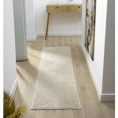 Isabella Living Room Area Rug Cut Loop Pile Polypropylene Weaving Jute Backing Indoor Carpet in Geometric, Cobble, Mazia Arch, Imperial Trellis Designs, Cream, 60x220 cm