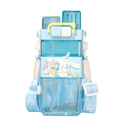 ISABELLA MOON Water bottle Reusable Kids 520ml PP with Two Lids Leak Proof straw Lid BPA Free Drinking (Light Blue)