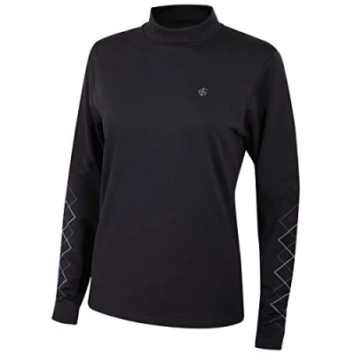 Island Green Golf IGLBASE1743 Womens Sports Water Repellent Compression Long Sleeve Base Layer T Shirt, Black, Size 14