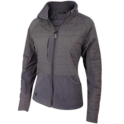 Island Green Golf IGLJKT1846 Womens Full Zip Sports Contrast Lightly Padded Quilted Jacket, Bedrock Grey, Size 12