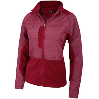 Island Green Golf IGLJKT1846 Womens Full Zip Sports Contrast Lightly Padded Quilted Jacket, Red Heather, Size 12