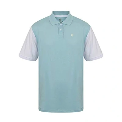 Island Green Golf IGTS1646 Mens Cotton Contrast Sleeve Polo Shirt Sports Top, Cerulean, Medium