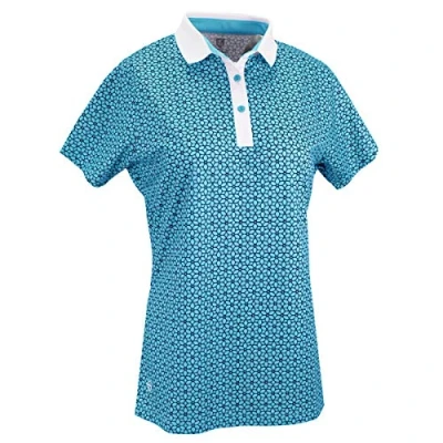 Island Green Golf Ladies Flower Print Breathable Flexible Moisture Wicking Zip Neck Polo Shirt Deep Pool/White, Size 16
