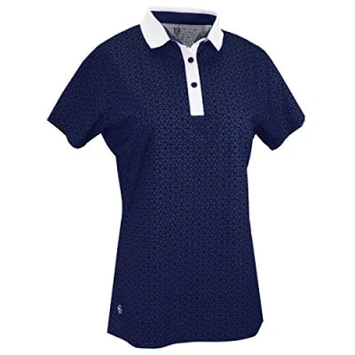 Island Green Golf Ladies Flower Print Breathable Flexible Moisture Wicking Zip Neck Polo Shirt Navy/While, Size 10