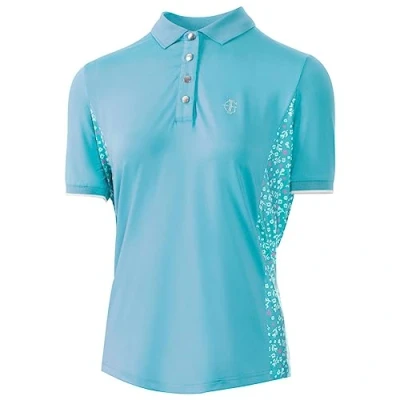 4-Way Stretch Properties – This garment is fused with 4-way stretch properties allowing the wearer to have flexible mobility that does not disturb the materials and bounces back into their original intended place Quick Drying – Made from materials that are designed for a quick drying process perfect for your wardrobe Moisture Wicking – This garment has moisture-wicking properties embedding within drawing moisture away from the skin for evaporation rather than being absorbed into the garment, ideal for a hot day on the course Breathable Materials – By only using fabrics which made from breathable lightweight properties this offers both comfortable and fashionable attire for all purposes Short sleeve polo shirt designed with floral side panels