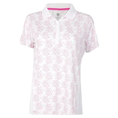 Island Green IGLTS2052 Ladies Golf Freesia Floral Print Wicking Breathable Short Sleeved Polo Shirt Top, Lavander/White, X Large