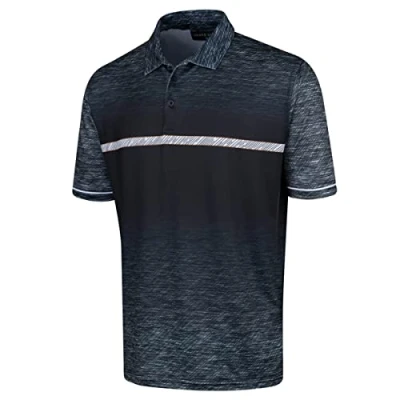 Island Green Men's CoolPass Stretch Quick Dry Breathable Polo Shirts, Black Marl, XS
