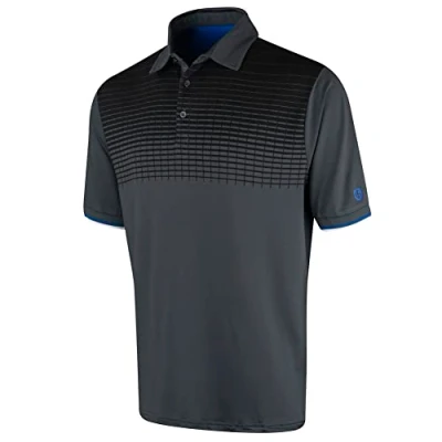 Island Green Men's CoolPass Stretch Quick Dry Breathable Polo Shirts, Charcoal, L